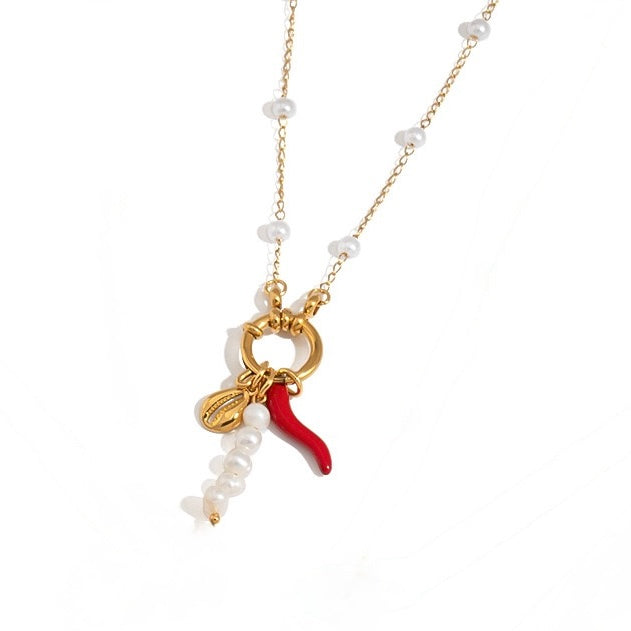 Die Chili-Kette steht für das Feuer des Lebens – für Mut, Liebe und die Kraft, alles mit Herz zu tun. Im Süden Italiens sagt man, sie bewahre den Träger vor dem malocchio, dem bösen Blick, und schenke ihm zugleich Energie, Vitalität und Lebensfreude.