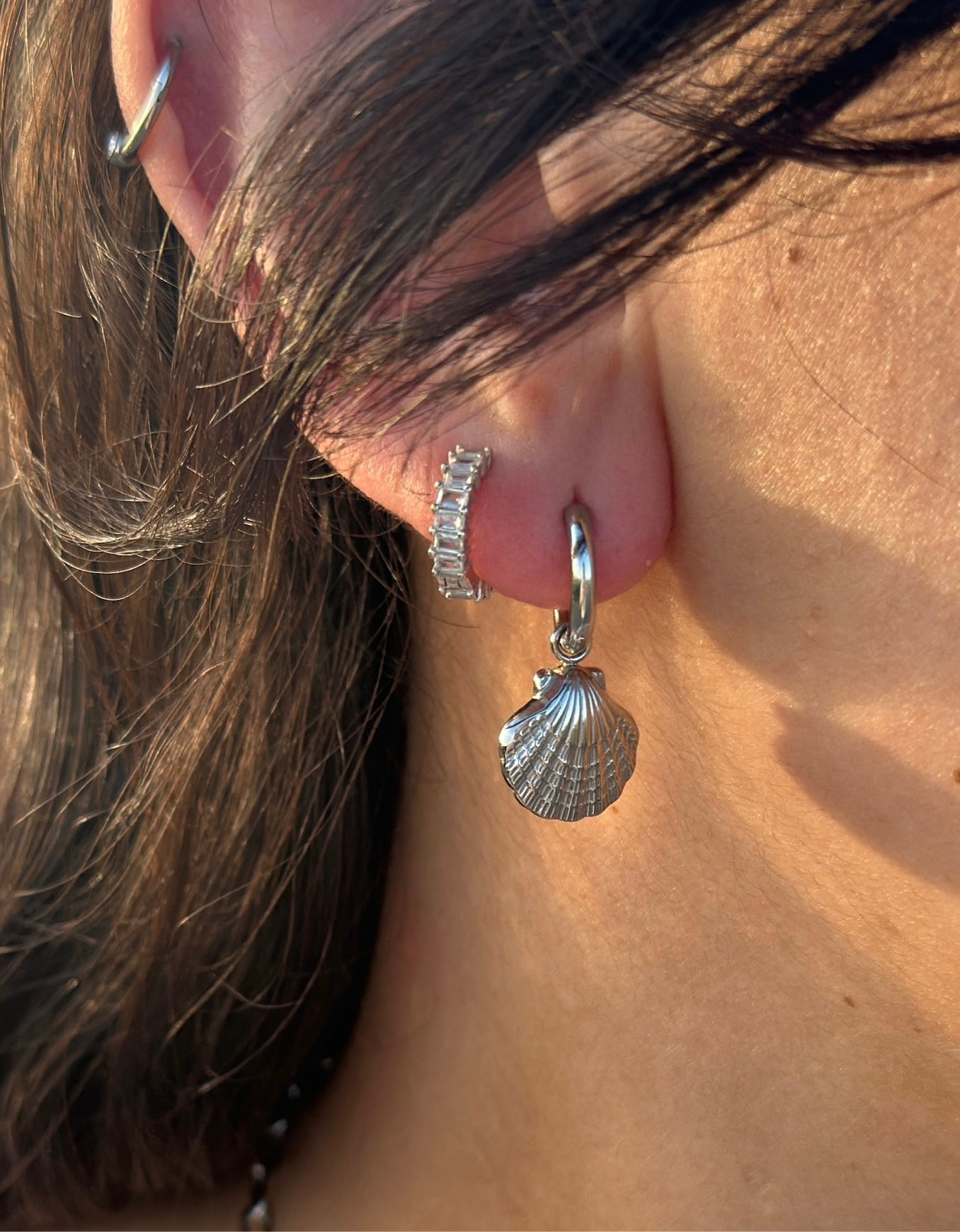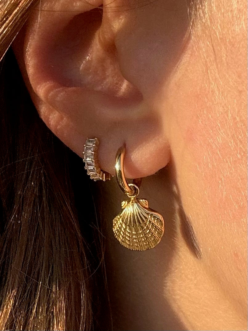 Creolen aus Edelstahl mit detailreichen Muschel-Anhängern. Erhältlich in gold- oder silberfarbener Ausführung.