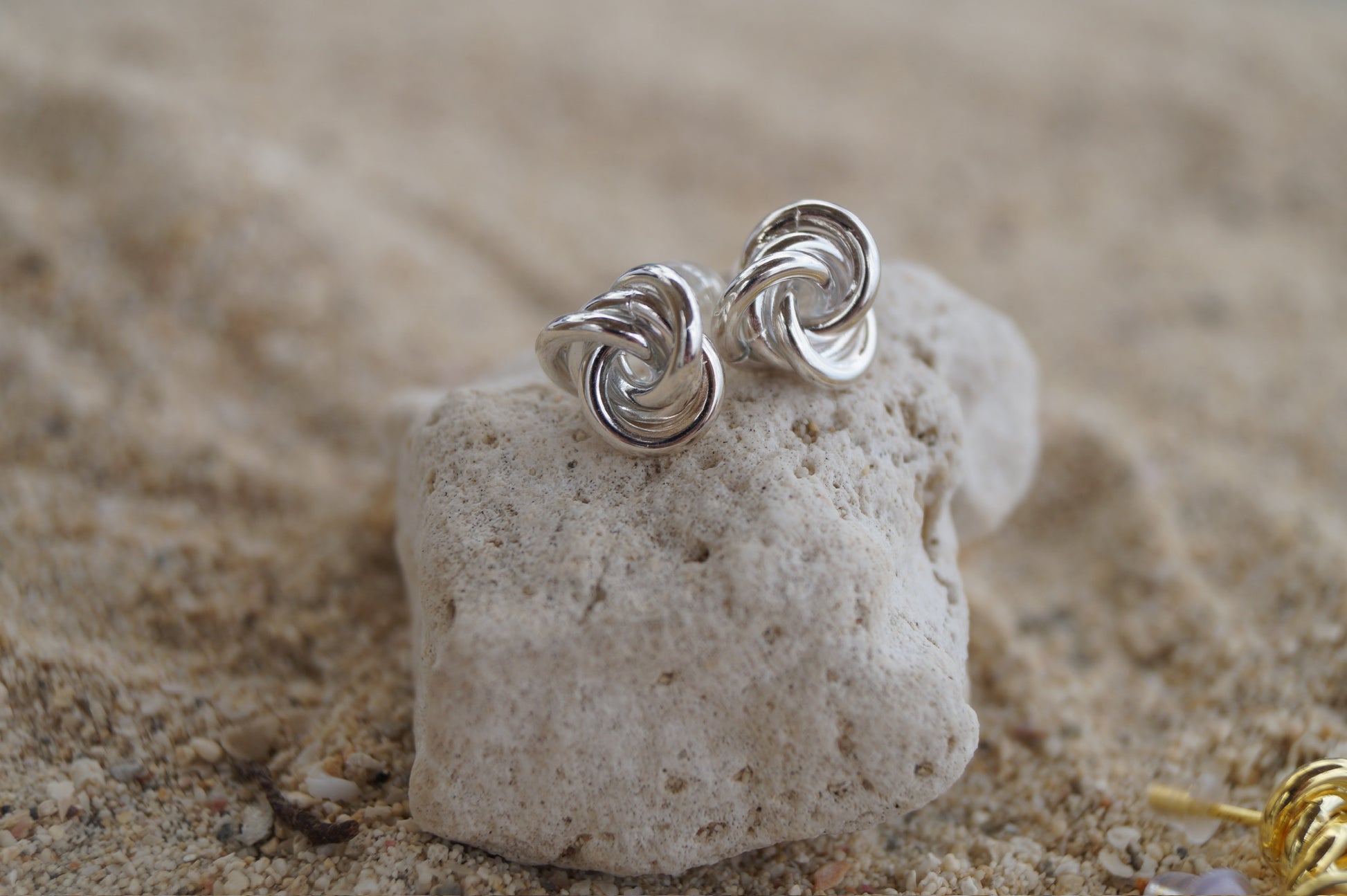 Diese eleganten Ohrstecker aus 925er Sterling-Silber bestechen durch ihr einzigartiges Knotendesign. Sie sind sowohl in klassischem Silber als auch in edlem Gold erhältlich und bieten einen geometrischen, zeitlosen Look, der perfekt zu Alltags- und Shopping-Outfits passt.